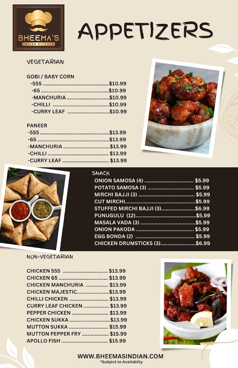 Welcome to Bheemas Indian Kitchen, where authentic Indian flavors come alive in every dish! Nestled in the heart of Carmel, IN, this restaurant boasts an extensive menu, featuring an impressive array of appetizers and entrees tailored for both vegetarians and non-vegetarians alike.